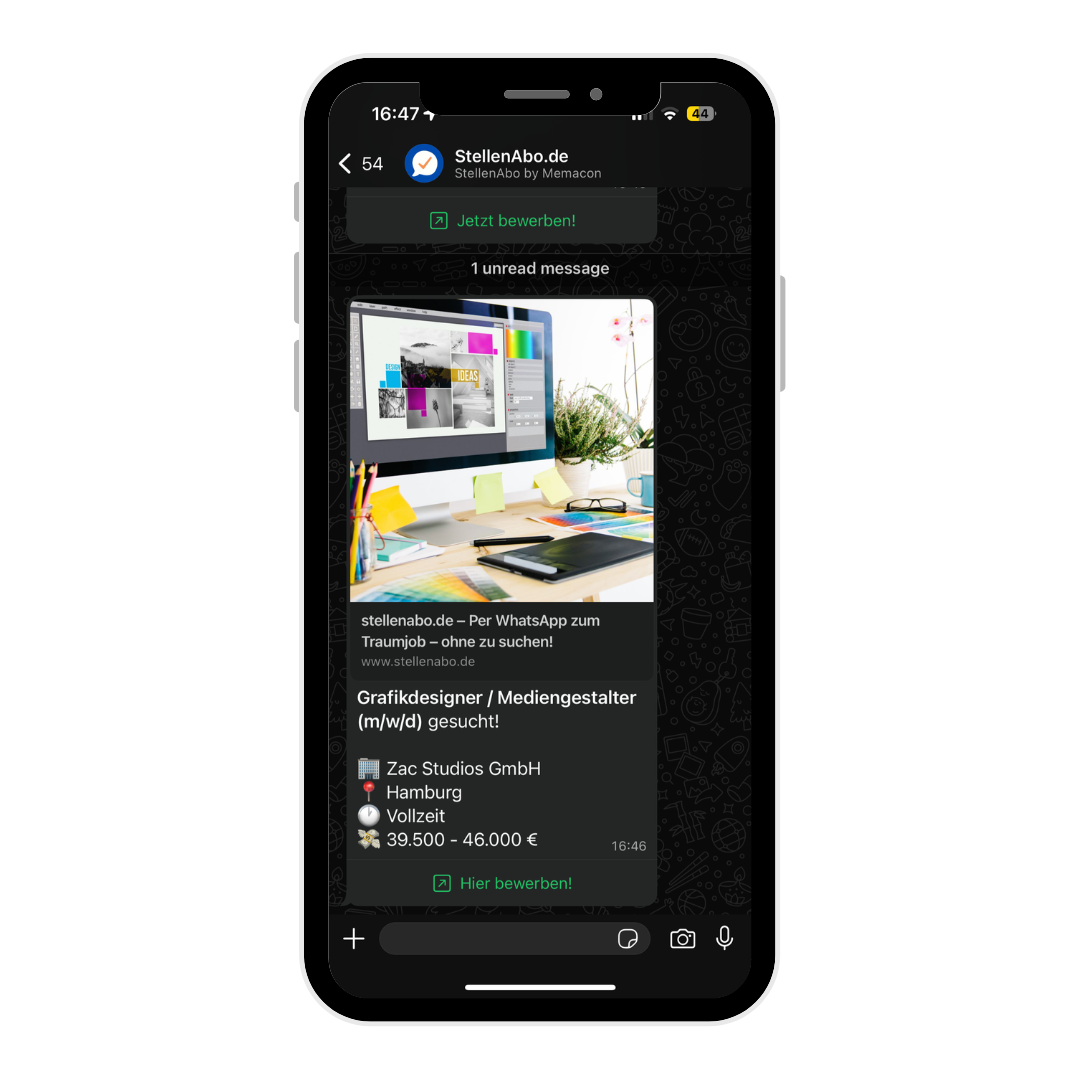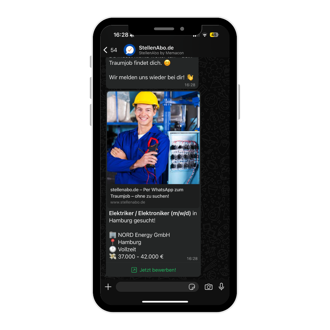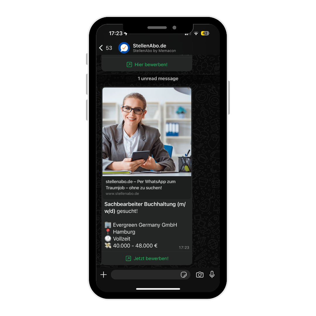 Dank hohen Öffnungsrate über WhatsApp wird Ihr Stellenangebot von mindestens 9 von 10 passenden Bewerbern geöffnet.